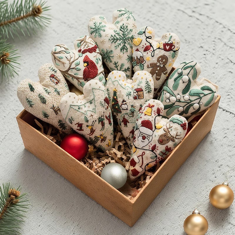 🎅Das Stickmuster ist thematisch an Feiertage angelehnt und von der festlichen Atmosphäre inspiriert, die sich die Menschen vor Weihnachten wünschen. ⛄Sticken Sie Weihnachtslichter, Schneeflocken, Stechpalmenbeeren, den Weihnachtsmann mit seinen Rentieren, kuschelige Strickhandschuhe, Schneemänner, Weihnachtsbäume, festliche Stadtatmosphäre, Skifahrer, Lebkuchenmänner, Weihnachtssüßigkeiten und vieles mehr rund um den Weihnachtsbaum.✨