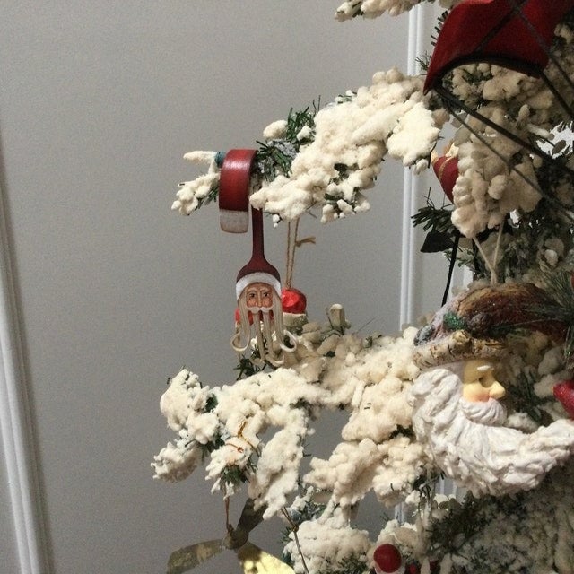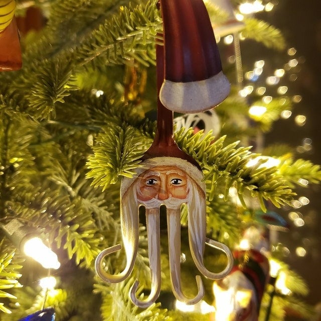 Der Weihnachtsmann ist sehr leicht und kann an fast jedem Ast eines Baumes oder an einem anderen Ort aufgehängt werden, ohne dass er durchhängt. Er hängt etwa 9 - 11,5 cm, je nachdem, ob es sich um eine Essensgabel oder eine Salatgabel handelt.