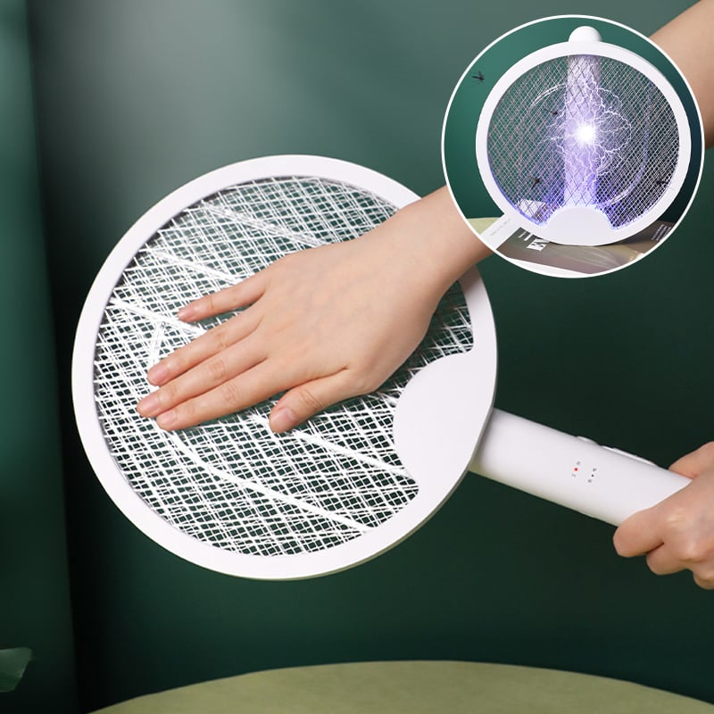 2-in-1 Design: Fliegenklatsche + Mückenlampe: Kombiniert eine elektrische Mückenschläger-Funktion mit einer violetten Licht-Mückenlampe. Manuell verwenden oder in den Automatikmodus wechseln für freihändigen, kontinuierlichen Schutz.