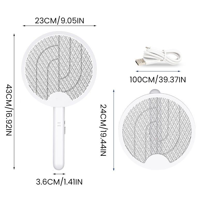 Hochspannungsnetz: Erzeugt einen sofortigen Hochspannungs-Schock zur Beseitigung von Mücken bei Kontakt. Mit automatischer Entladung zur sicheren Entfernung von Reststrom nach dem Gebrauch.