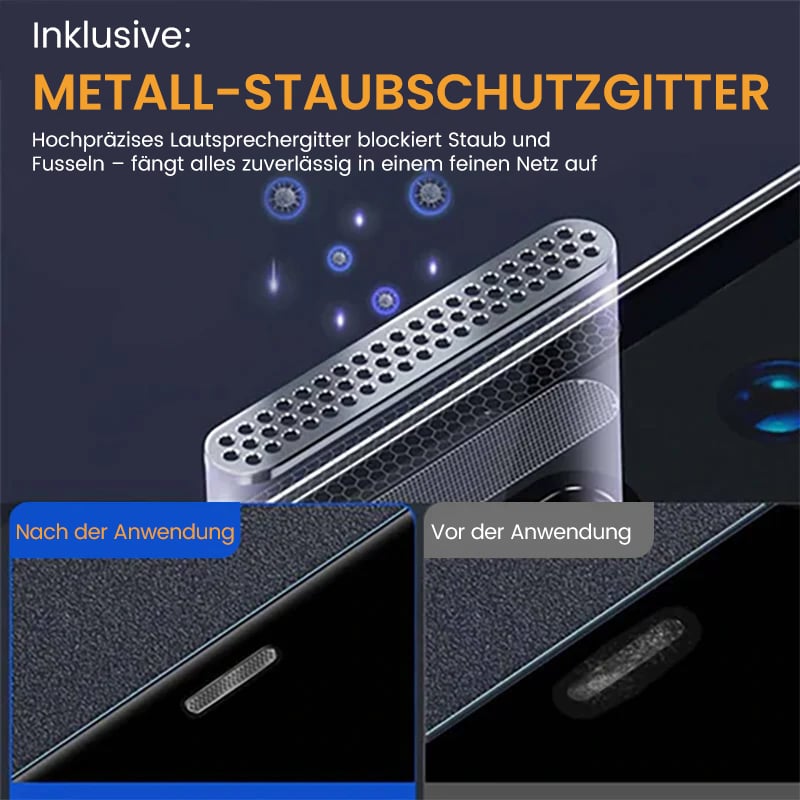Mit integriertem Metallgitter – schützt vor Staub, ohne den Klang zu beeinträchtigen. Für klarere Gespräche.