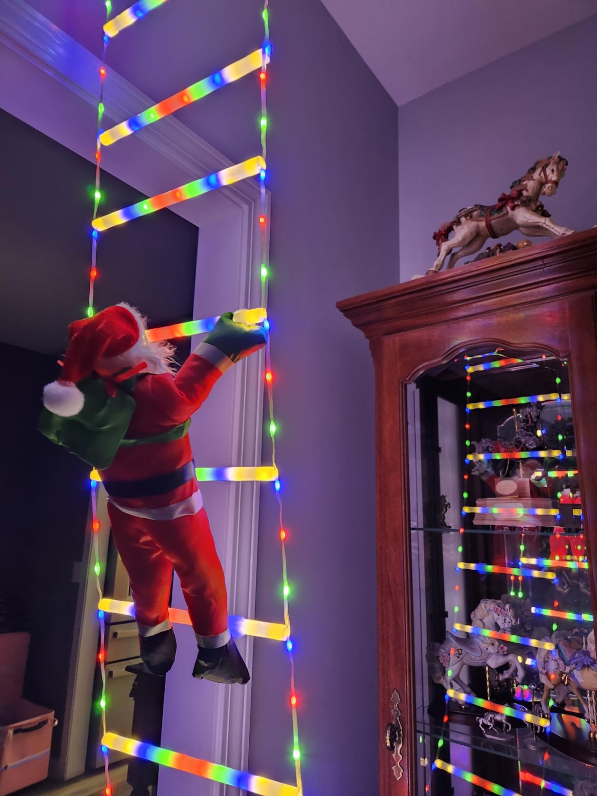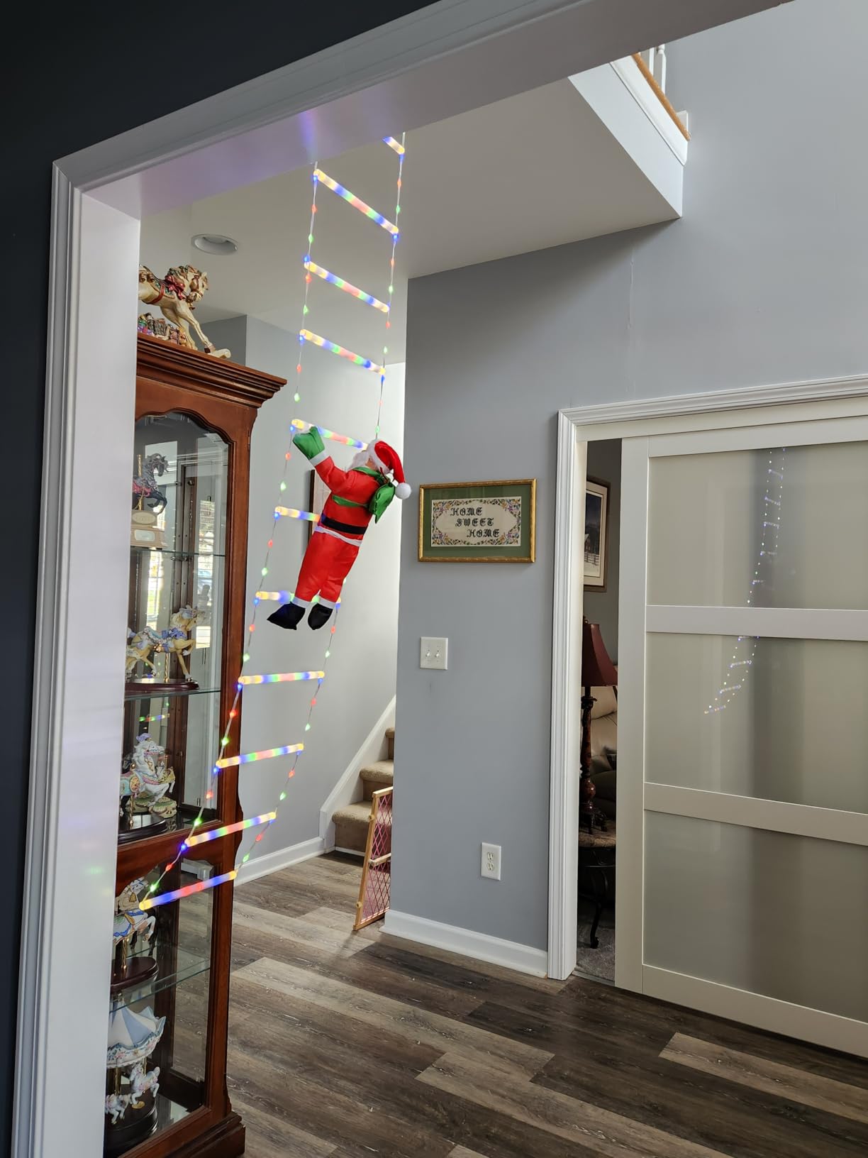Ich liebe unseren kleinen kletternden Schneemann. Er ist langlebig, das Material fühlt sich billig an, aber es sieht nicht billig aus. Die Lichter sind hell und ich mag, dass man die Lichter von verschiedenen Blinkmodi auf festes Leuchten umschalten kann, es hat ein langes Kabel, was es einfach macht, es überall einzustecken, meine Kleine hat normalerweise Angst vor dem Weihnachtsmann, aber diesen hat sie akzeptiert, lol.